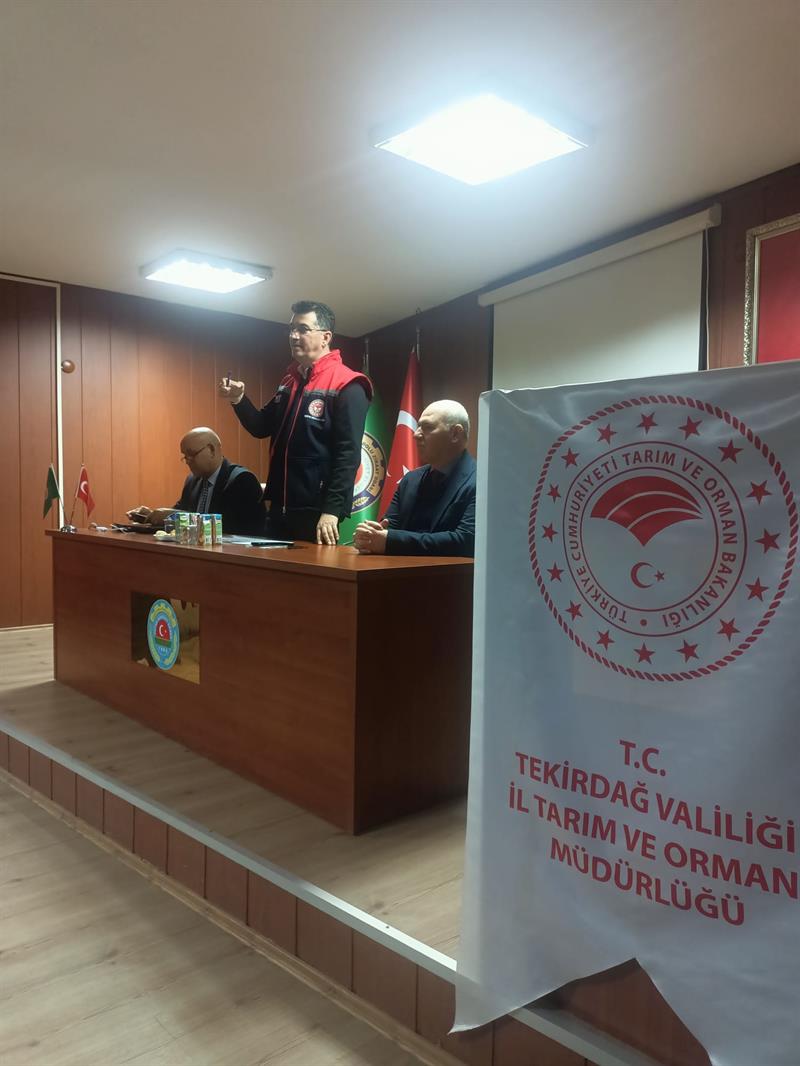 Moderatörlüğünü Tekirdağ İl Tarım ve Orman Müdürü Mehmet AKSOY'un yaptığı toplantıda, Tekirdağ Namık Kemal Üniversitesi Ziraat Fakültesi Tarla Bitkileri Bölüm Başkanı Prof. Dr. İsmet BAŞER, Biyosistem Mühendisliği öğretim üyesi Prof. Dr. Fatih KONUKCU sunumlarını yaptı.