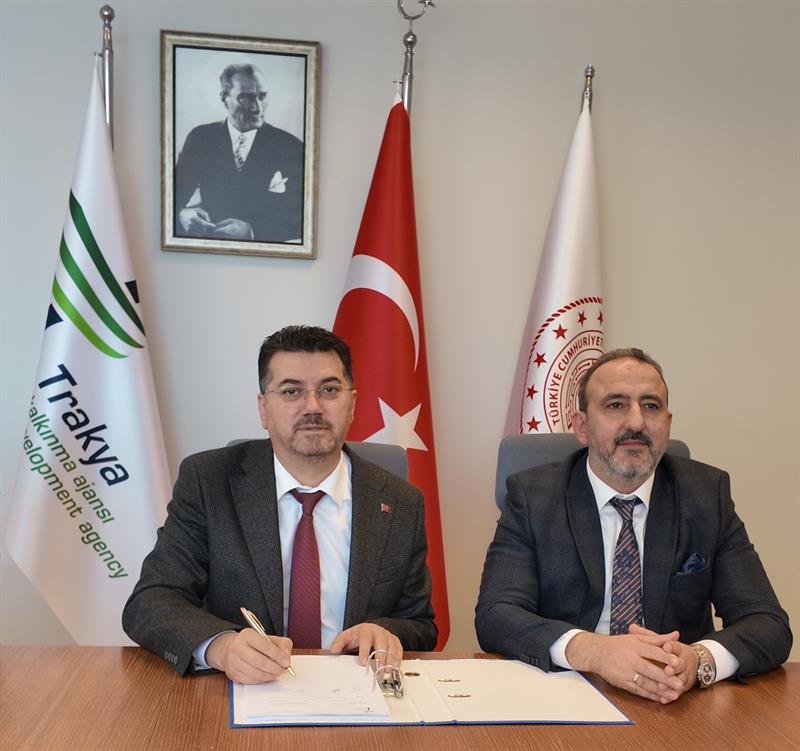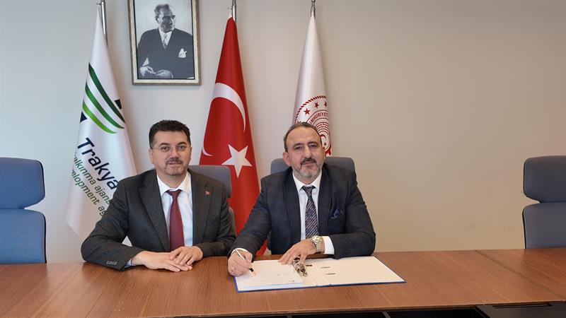 Trakya Kalkınma Ajansı tarafından yürütülen 2025 Yılı Tarım ve Kırsal Kalkınma Teknik Destek Programı kapsamında desteklenmeye hak kazanan Tekirdağ İl Tarım ve Orman Müdürlüğü'nün “Tarımda Dijital Çağ" projesine ilişkin hibe sözleşmesi, Tekirdağ İl Tarım ve Orman Müdürü Mehmet AKSOY ve Trakya Kalkınma Ajansı Genel Sekreteri Mahmut Şahin tarafından imzalandı.
